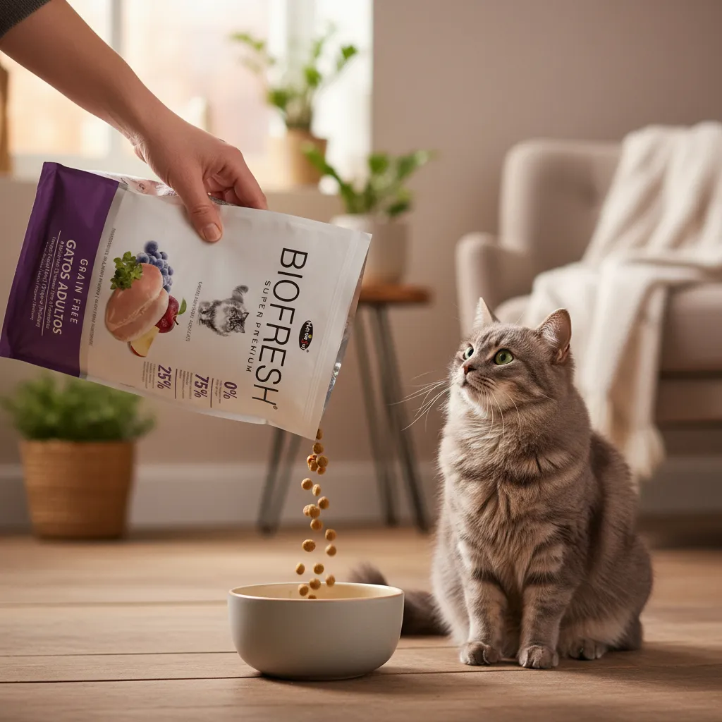 Biofresh Super Premium para Gatitos es un alimento con alta inclusión de carnes frescas y un toque de verduras y frutas, con un 75% de ingredientes de origen animal, totalmente libre de granos, e ideal para felinos. Completo y equilibrado para un correcto desarrollo de gatitos, favoreciendo una musculatura fuerte y magra, óptima formación del sistema nervioso y estimulación de las defensas naturales. Protección temprana de la salud oral e incorporación de moduladores fecales para una formación de heces de olor y volumen reducido. Altamente palatable con croquetas de fácil masticación, ideal para después del destete y para toda su etapa de crecimiento.